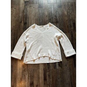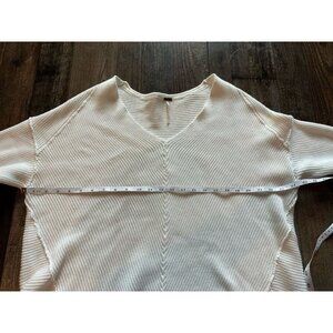 Free People La Brea V-Neck Sweater in White Size Large Ribbed Oversized. Excellent condition, slight grayish mark as pictured.