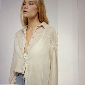 Free People La Luna Crushed Velvet Blouse XS