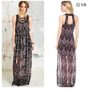 Free People Lace Boho Festival Moroccan Printed Yoke Maxi Dress Size 6
