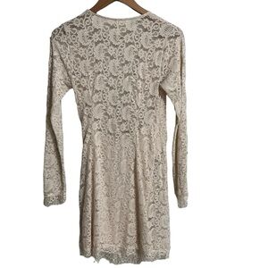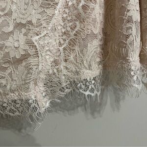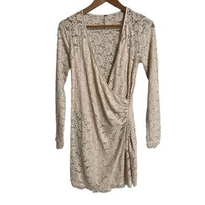 Champagne Toast, long sleeve, stretch lace, sheer back, ruching at side.