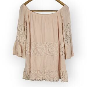 Free People Lace Off The Shoulder Bell Sleeve Small Pink Fairy Romantic Feminine