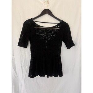 Free People Lace Peplum Top Black Floral Scoop Neck Size XS Romantic Goth Whimsy
