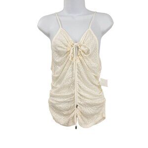 Free People Lace Ruched Love Her Tank Top Cami Ivory White Gardenia