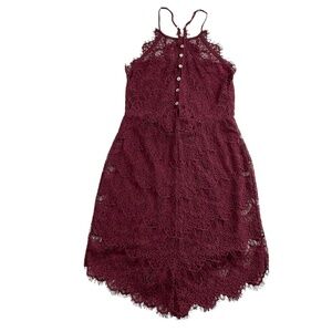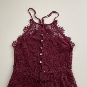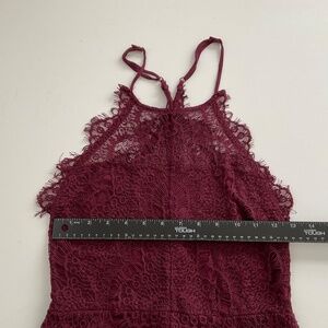 Free People Lace She’s Got It Sz S Burgundy Halter Mini Romance Coquette Whimsical Party