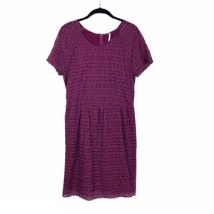 Free People Wine Woven Lace Short Sleeve Fit 'n Flare Mini Dress