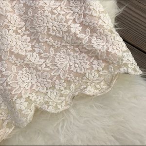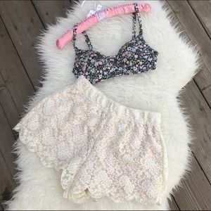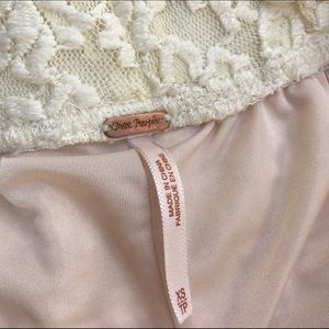Free People Lace Shorts Sz XS • Runs a little small IMO •Beautiful creamy white lace shorts with an inner lining •Great used condition •Has minor dark marks on the back bottom hem nearly invisible (SEE PICS)
