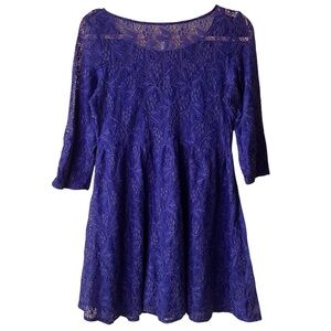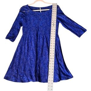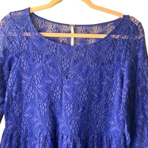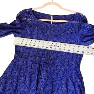 Free People Blue Three-Quarter Sleeve Lace Skater Mini Dress. In good condition. Lightly worn.