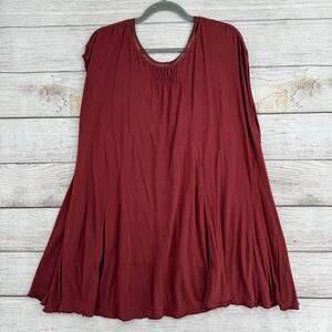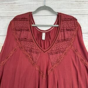 Free People Lace Trim Sleeveless V-Neck Blouse Womens Large Brown Red
