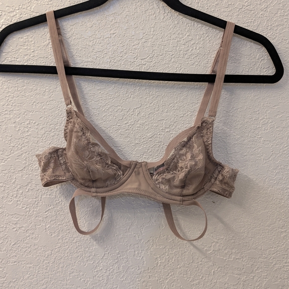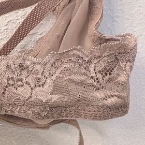 Chic lace design. Underwire support. Ideal for daily wear. double strap waist . super sexy design. strap above breast area . size 32A tan , dark cream color no padding. sexy lace design. gently worn. great condition.