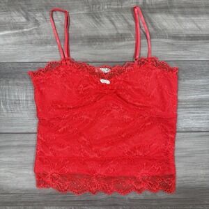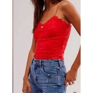 Free People Lacey Essential Red Cami Romantic Cropped Lace Size Small NWOT