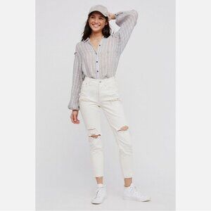 Free People Lacey Stilt Denim Distressed Jeans in Worn White Size 27 NWT