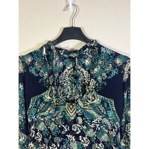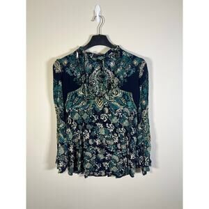 Free People Lady Luck Printed Long Sleeve Paisley Boho Blouse Size XS Whimsical