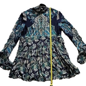 Free People Lady Luck blue Teal paisley Mini Dress Tunic women's size medium