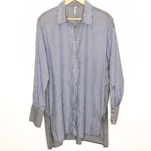 Bidirectional stripes and an oversized fit take this Free People cotton shirt over the edge, finished with a high-low hem.