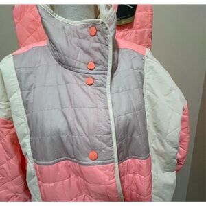 The Features: Mixed quilted design, fleece-lined pockets;elastic loopers and snaps at snow skirt to attach to pant,zipper stash pocket; mesh vent accents