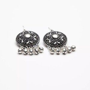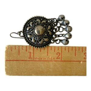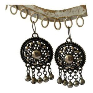 Free People large, antiqued metal disc statement earrings with five dangling bells & hook posts. Preowned in great condition.