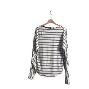 Free People Large Ardmore Mock Neck Striped Long Sleeve Tee Top Nautical Preppy