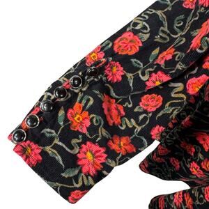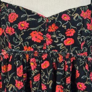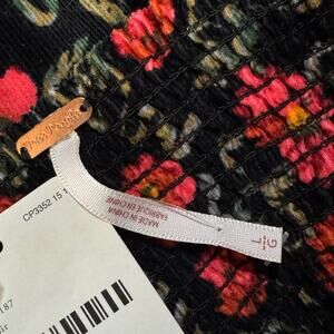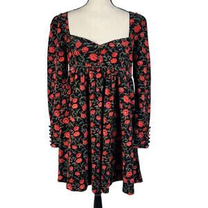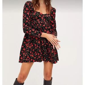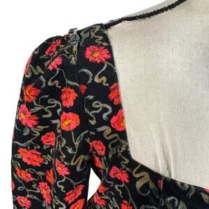 Free People Large Bessie Corduroy Mini Dress Floral Puff Sleeves Sweatheart Neck
