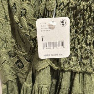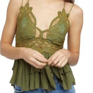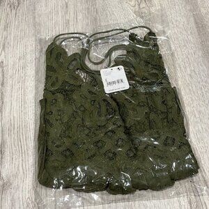Free People Large Crochet Lace Adella Camisole Olive Sparrow Green NWT