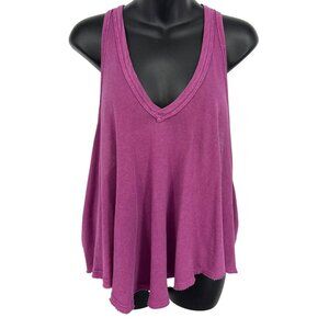 Free People Large L Dahlia Mauve Karri V-Neck Tank Top Blouse V-Neck Racer New