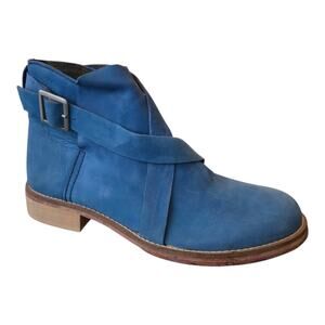 Free People Las Palmas Blue Distressed Leather Ankle Boots 37 Boho Chic Rustic