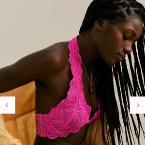 Experience comfort and style with this stunning lace halter bralette. Perfect for any occasion, its vibrant pink hue adds a pop of color to your wardrobe.