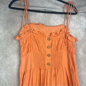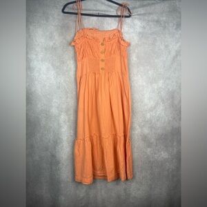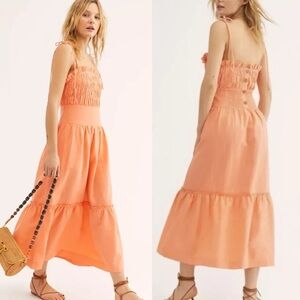 Free People Late Checkout Midi Linen Blend Dress In Orange Women's Size M