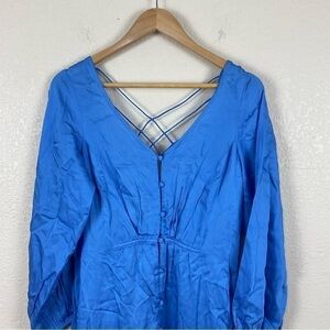 Free People Later Days Button Front V-Neck Long Sleeve Midi Dress Size 8 Women