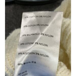 The Free People Laurel Cable Knit Collared Oversized Pullover Sweater Top in size small is a stylish and cozy addition to any winter wardrobe. Made from a blend of 69% cotton and 31% nylon, this ivory sweater features a classic cable-knit pattern with a collared neckline and long sleeves. The oversized fit and stretch material make it comfortable and versatile for everyday wear. Hand wash only to ensure the longevity of this chic and trendy piece from the Free People brand. Perfect for adding a touch of knit style to your look, this sweater is a must-have for the cold season.