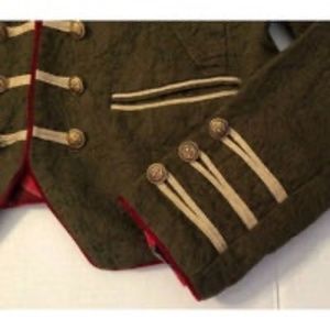 Textured finish; decorative non-functional buttons at front & cuffs;