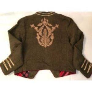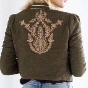 FREE PEOPLE LAUREN BAND MOSS ARMY GREEN EMBROIDERED CROPPED JACKET