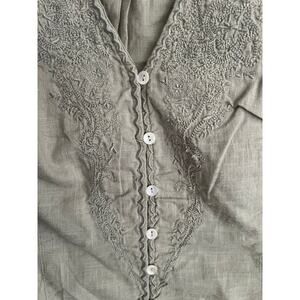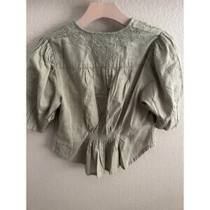 Free People Laurie Embroidered Blouse / Green Tea Leaves