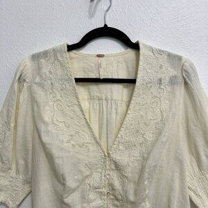 Free People Laurie Embroidered Top Blouse M Cottagecore Peasant Prairie Coquette