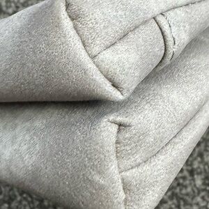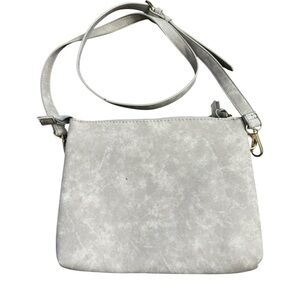 Vegan leather crossbody bag. Light grey. Multiple zipper pockets. Liked interior. Adjustable strap. Small mark to back of the bag as seen in last pic.