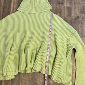 Free People Layer Cake Sweater Ruffle Mock Neck Chunky Knit Key Lime Size XS