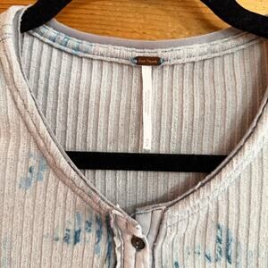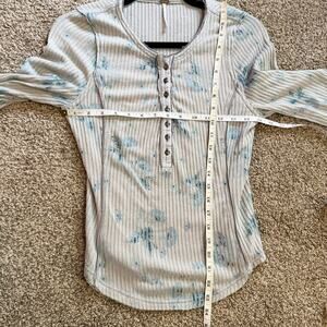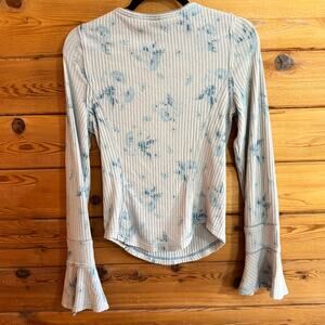 Free People Layer Me Henley Top Long Sleeve Floral Blue Bell Sleeve Medium