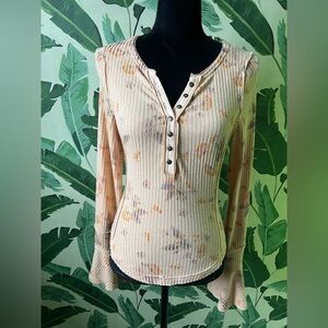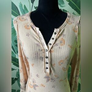 Free People Layer Me Henley in Just Peachy Combo Size S
