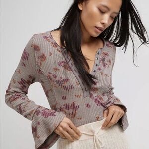 Free People Layer me Henley Top Small Bell Sleeve
