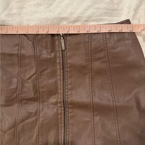 A silvery zip slices down the center of this faux-leather miniskirt that's ideal from day to night. 15 1/2" length (size 8) Lined 100% viscose with polyurethane coating Machine wash, tumble dry Imported