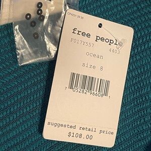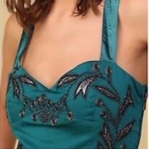 Free People Leaf Motif Smocked Dress Teal Size 8 Floral Embellished Sparkle Boho