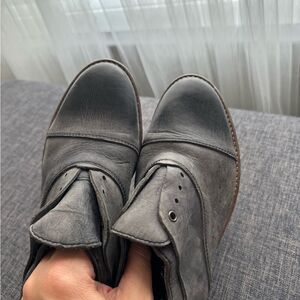 Free People Leather Slip On Oxford Shoe Distressed Gray (Sz 6) EU 37