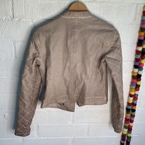 Free People Leather Vegan Pink Taupe Zip Up Moto Jacket sz 2