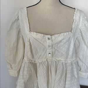 Free People Leave It To Me Babydoll Top Cotton in Ivory Square Neckline Size L