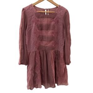 Free People Leigh Long Sleeve Lace Dress Mauve Plum Size Medium