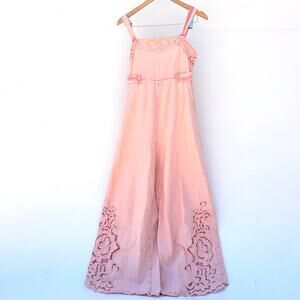 Free People Leighton Wide Leg Jumpsuit Pink Cotton Lace Overalls Denim Small