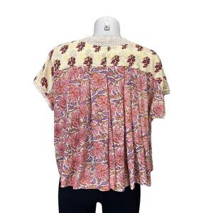 Free People Leilani Crop Print Top Ivory Tea Combo Size Large Crochet Trim