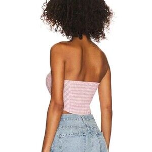 Free People Leilani Gingham Tube Top Corset NWT Pink White Smocked Back Size L