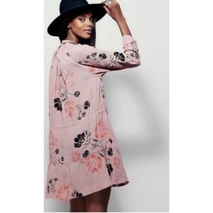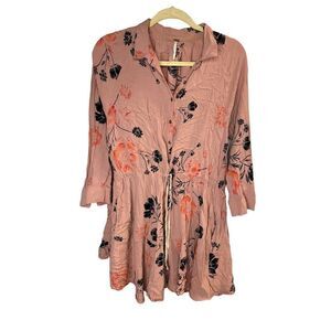 Free People Lena Mini Dress Floral Print Rose Black Red Drawstring Waist sz Smal