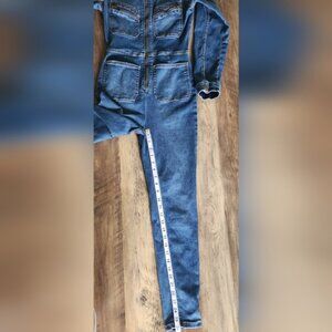 Free People Lennox Zip-Front Denim Jumpsuit XS Excellent Condition