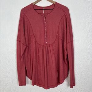 Free People Leo Henley Waffle Knit Tee Size Medium